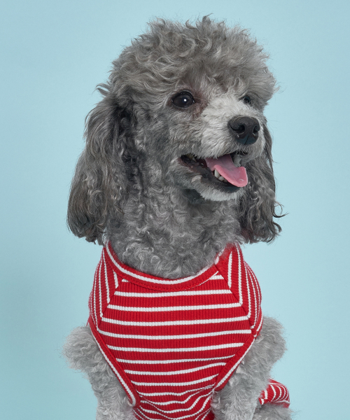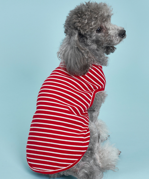 강아지 골지줄무늬 티셔츠 S-5XL 레드