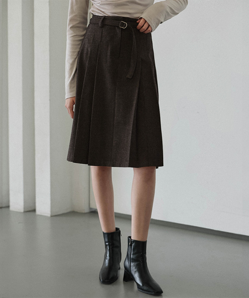 Belt Pleats Midi Skirt [Brown]