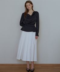 Satin Pleats Long Skirt [Ivory]