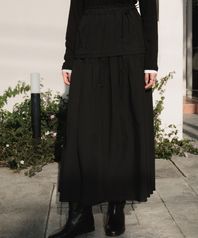 Ruffle Long Skirt [Black]