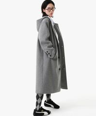 HAND STITCH HOODIE MAXI WOOL COAT (GREY)
