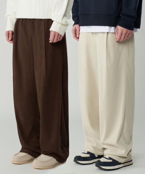 원턱 와이드 코듀로이 밴딩 팬츠 3Color