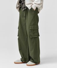 와이드 빅포켓 코튼 카고 밴딩 팬츠 [카키]