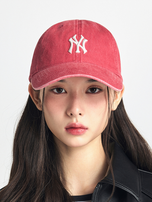 베이직 워싱 언스트럭쳐 볼캡 NY (D.Red)