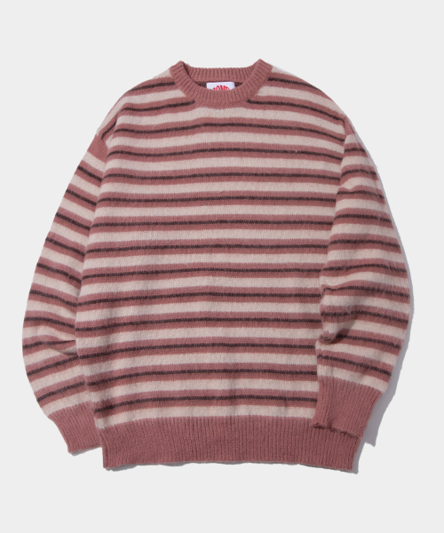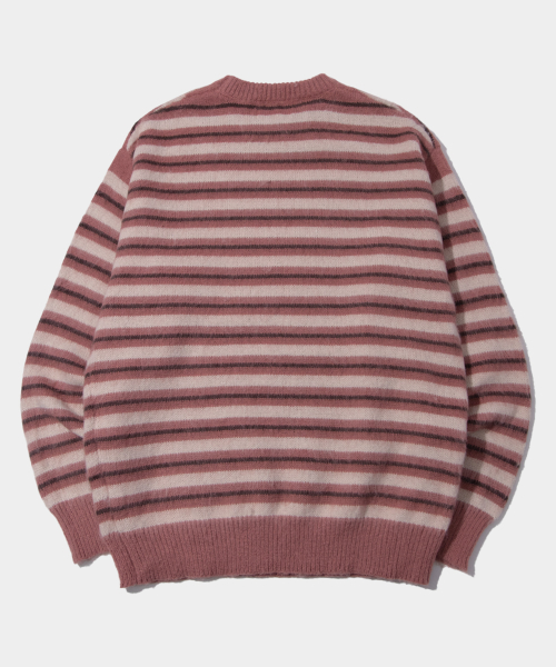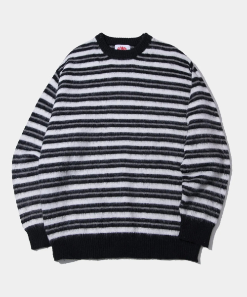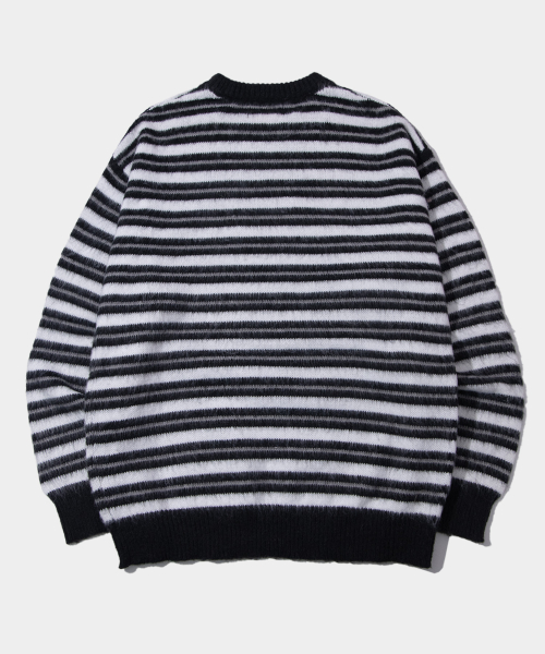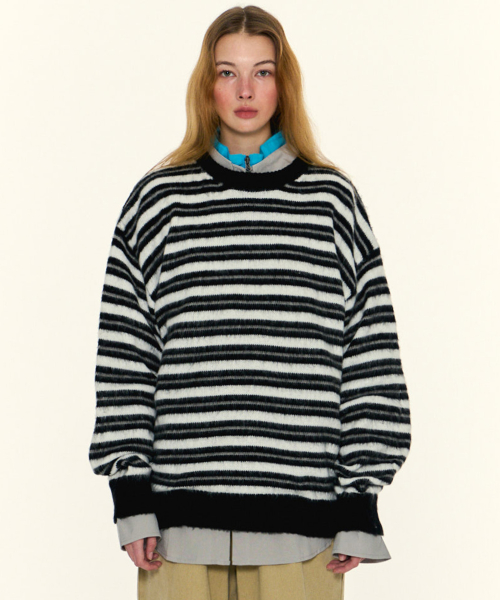멀티 스트라이프 배색 라운드넥 긴팔 오버핏 니트 [블랙]