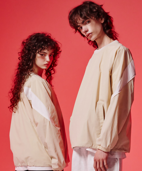 파이핑 컬러블록 웜업 피스테 롱슬리브 베이지 GA4731 BE