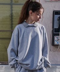 우먼스 카라넥 스트링 스웨트셔츠 멜란지그레이 GA4711 GR