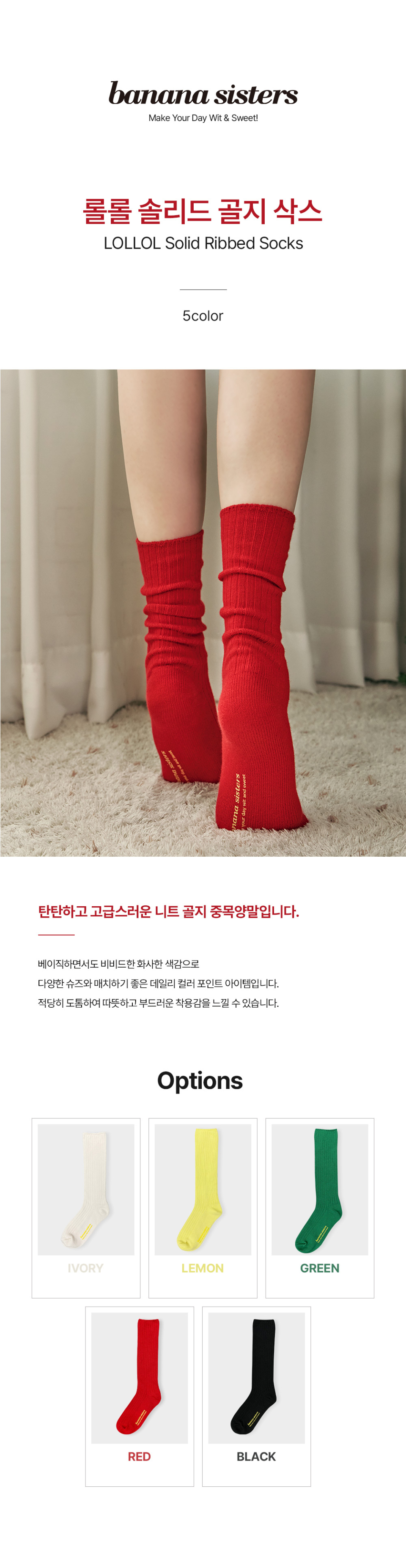 [3PACK] 롤롤 솔리드 골지 삭스 5color