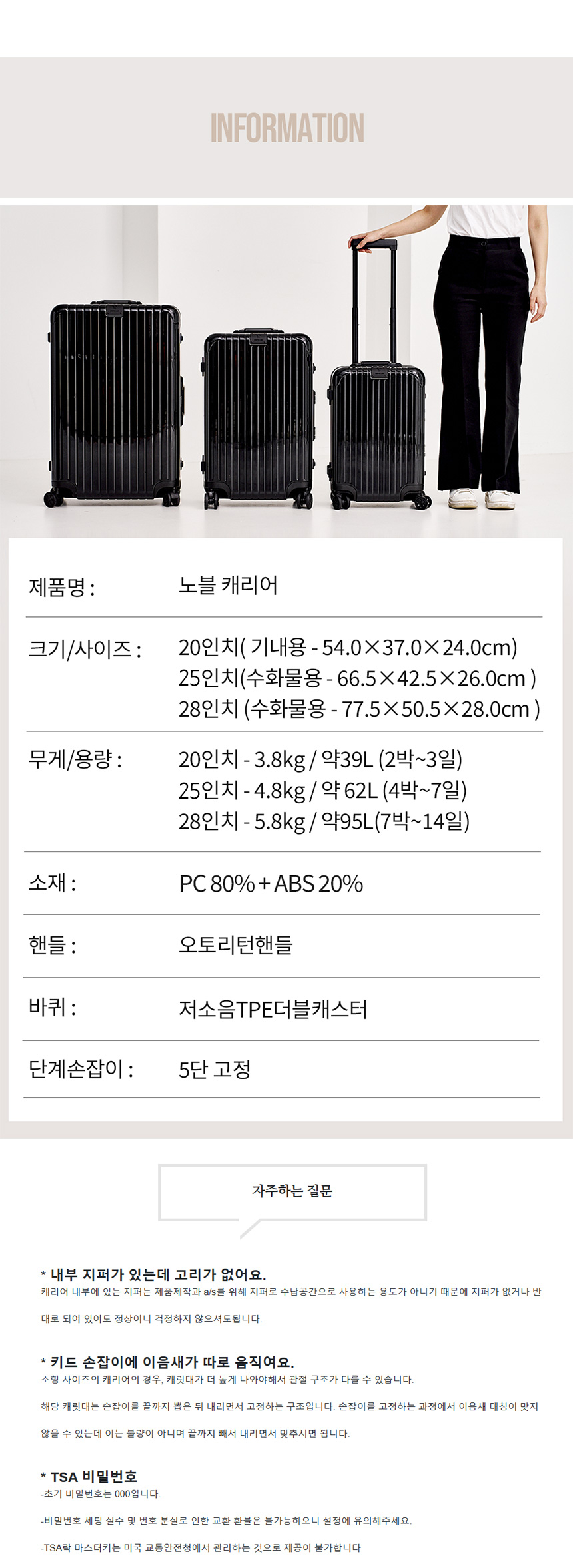 노블 20인치 기내용 캐리어 여행용가방