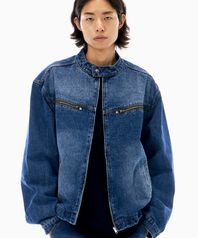 워시드 차이나 카라 스냅 절개 데님 바이커 자켓 DLX1276 (2 COLOR)