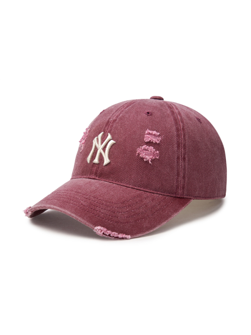 데미지 워싱 언스트럭쳐 볼캡 NY (Burgundy)