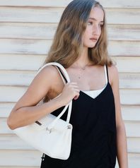 플랩 웨이스트 스퀘어 레더 숄더 백 [아이보리]
