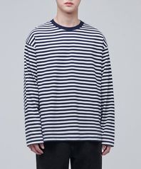 스트라이프 릴렉스드 크루 넥 긴소매 티셔츠 [네이비]