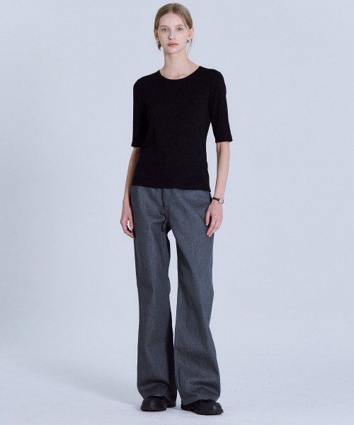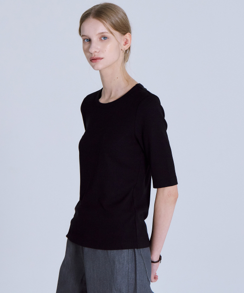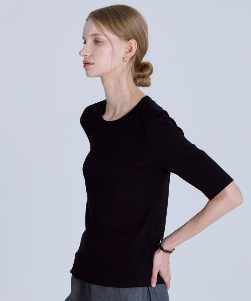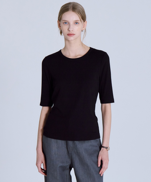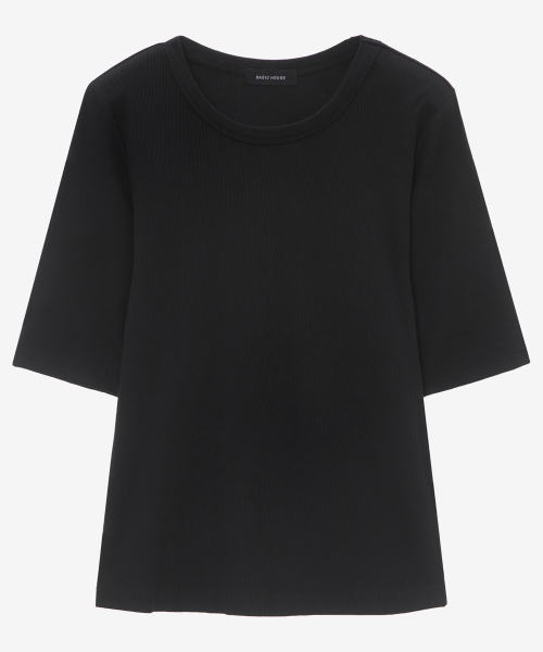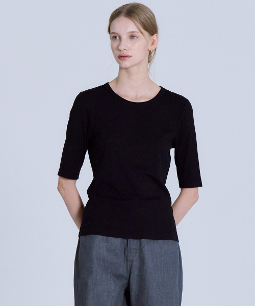 여성 RIB 5부 티셔츠 블랙 LYTS7203
