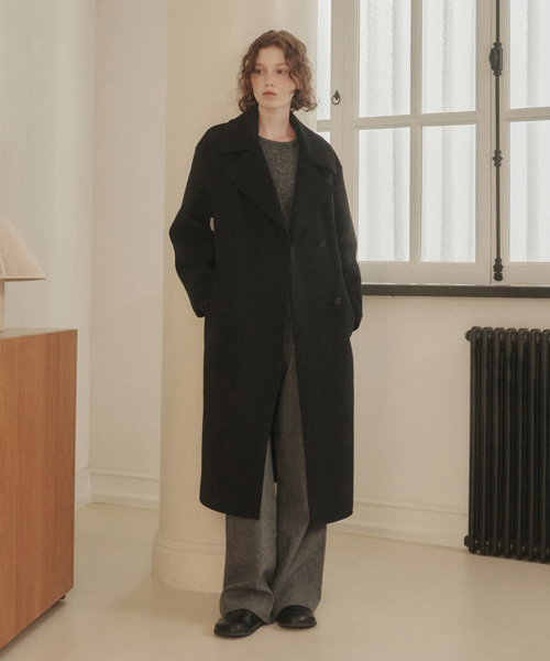 [HAND MADE] PURE WOOL BELTED DOUBLE CT (BLACK)