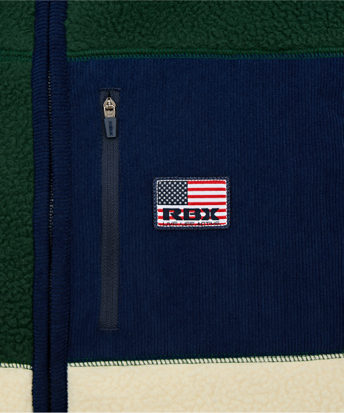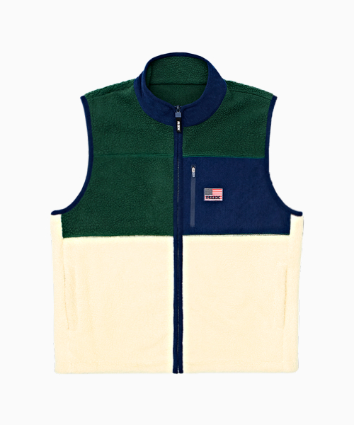 플리스 집업 컬러블럭 베스트 그린