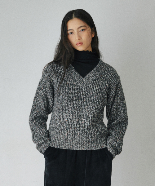 하찌 보카시 브이넥 니트 스웨터 블랙