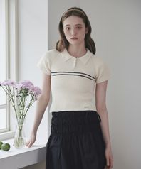스트라이프 카라 하프 니트 베이지