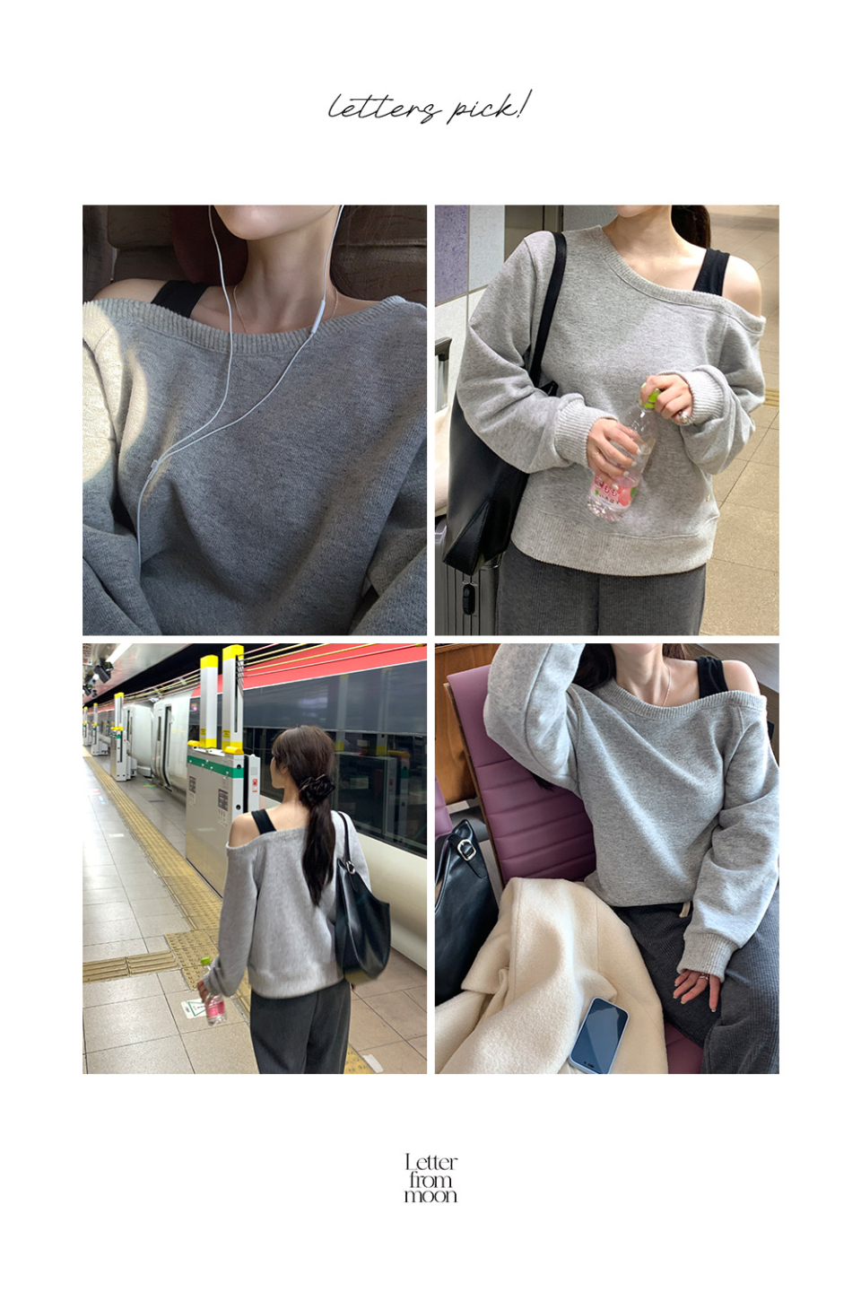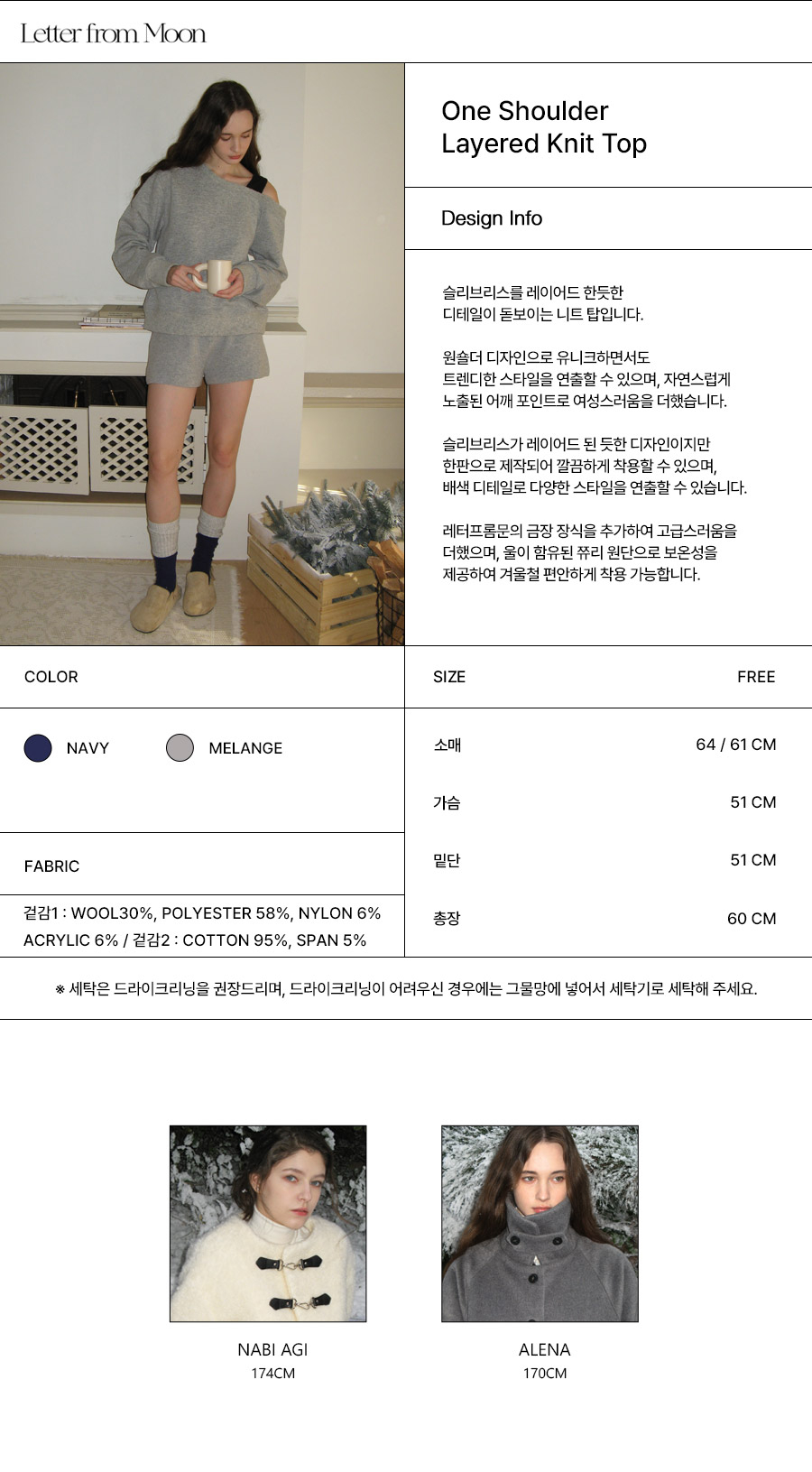 원 숄더 레이어드 니트 탑 ( 멜란지그레이 )