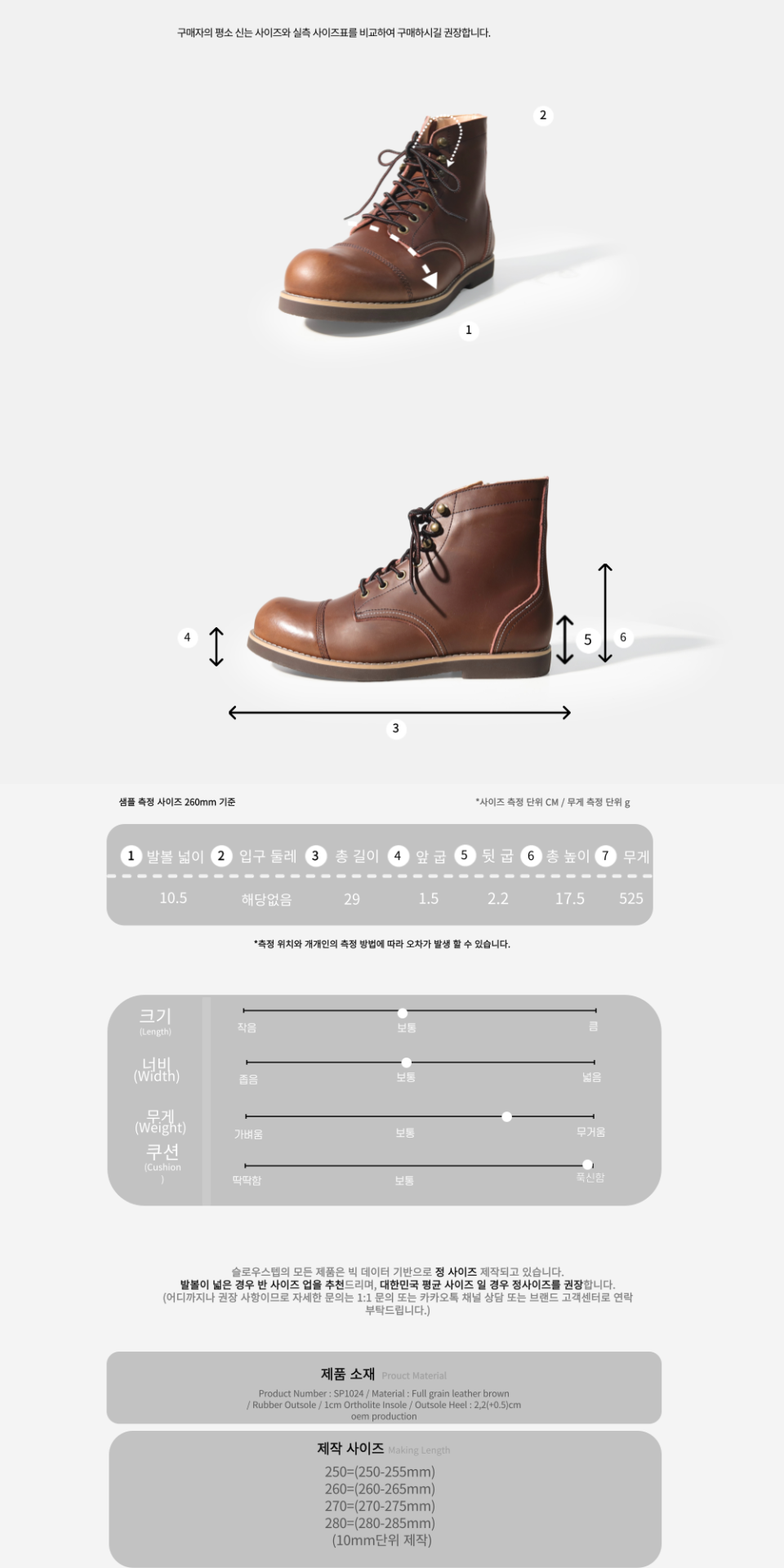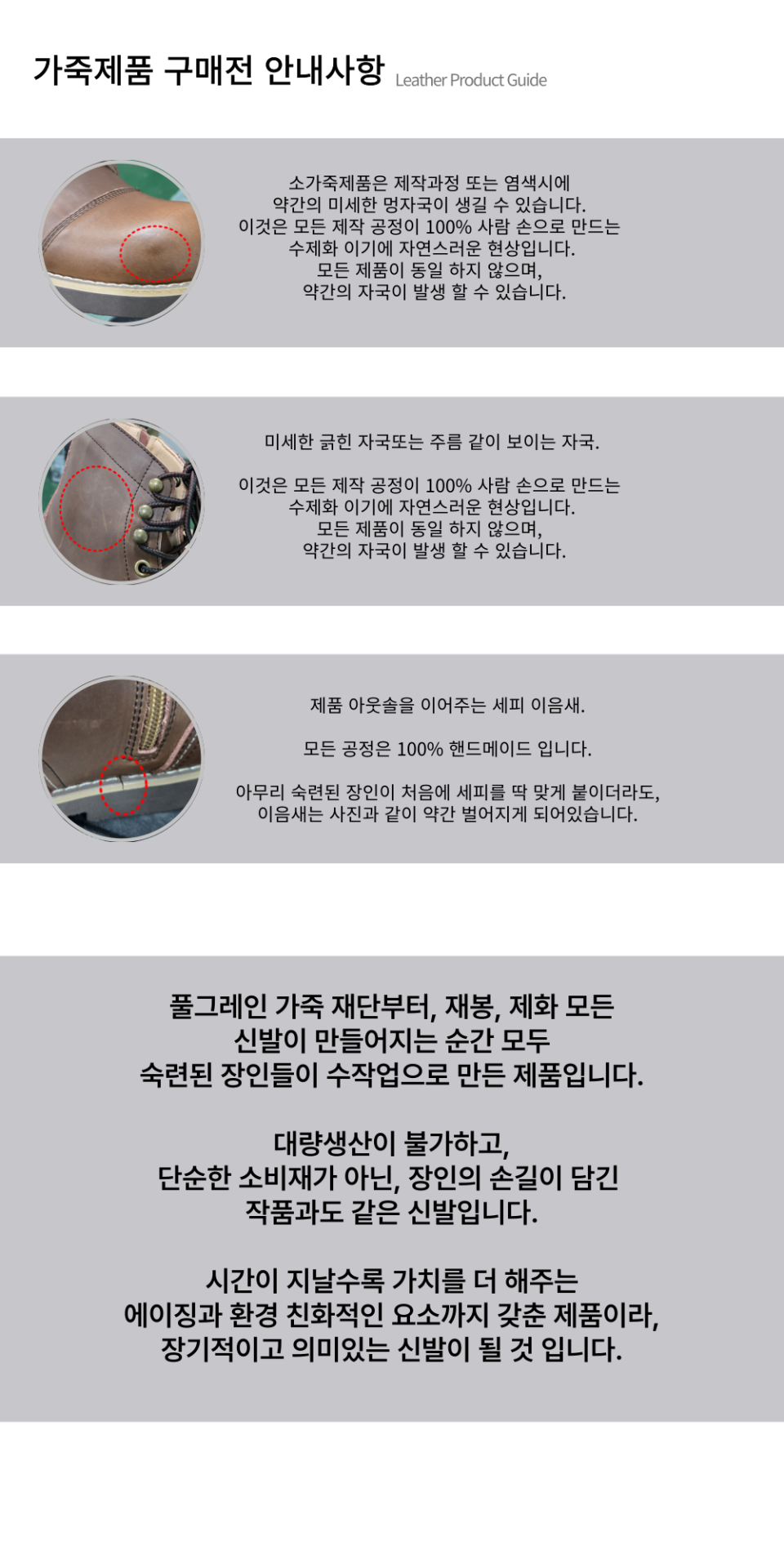본 제품은 숙련된 장인들이 한 켤레씩 정성껏 작업하는 수제화입니다.