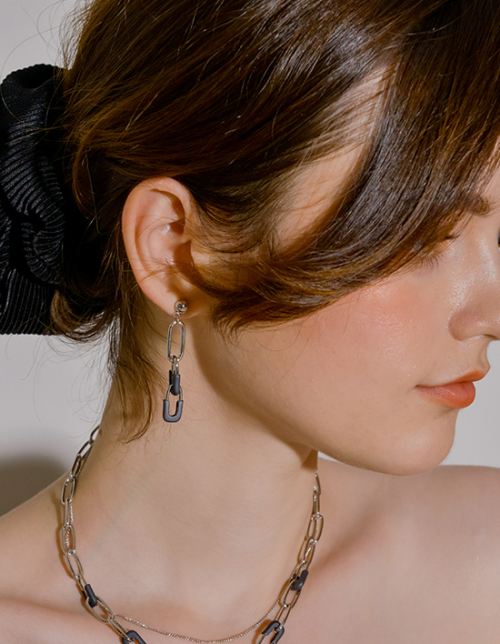 [FW]컬러드 링크체인 언발런스 귀걸이