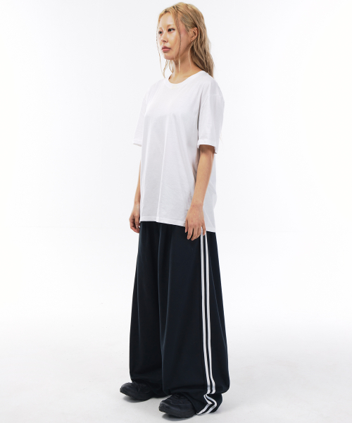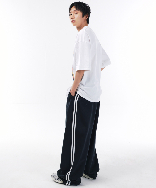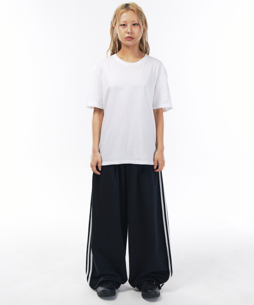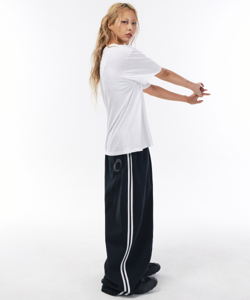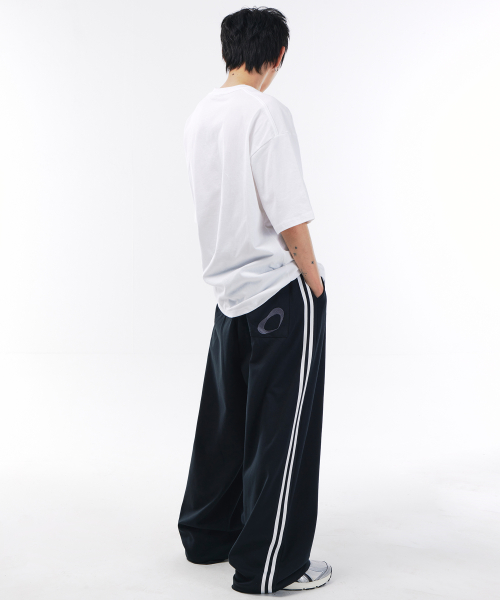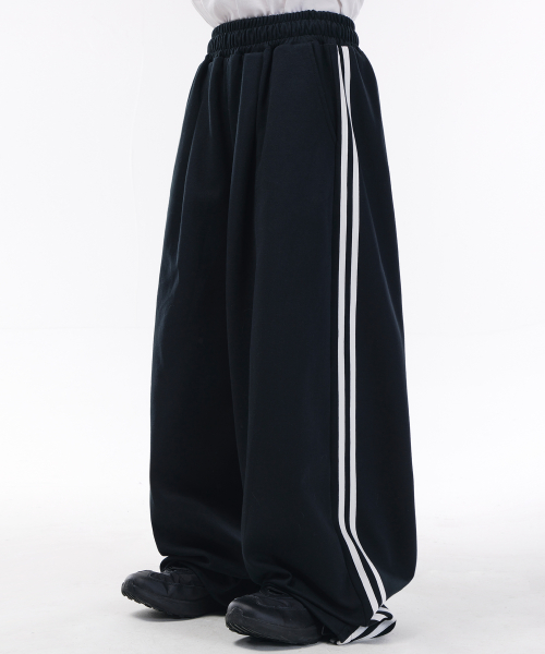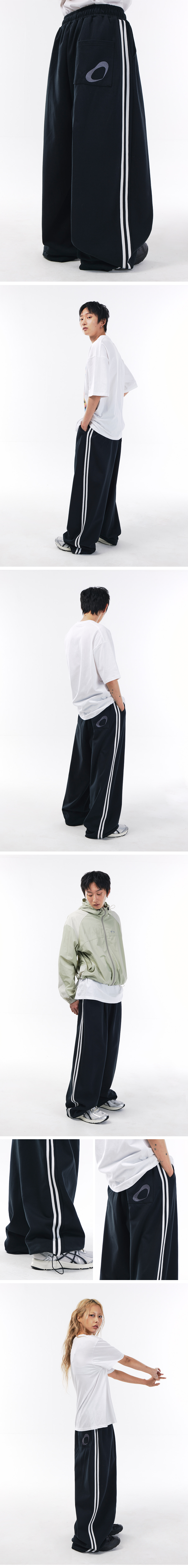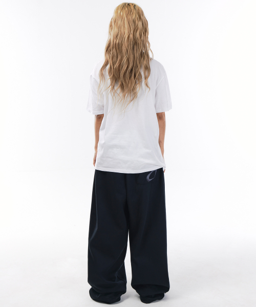 스몰 로고 멀티턱 커브드 스웨트 팬츠[블랙]