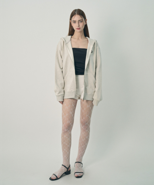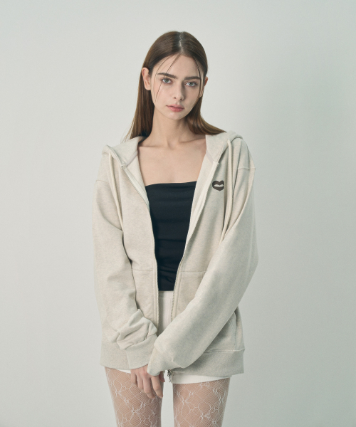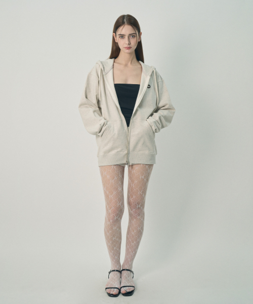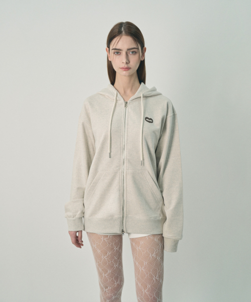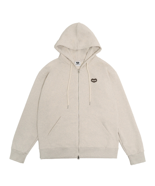 [UNISEX] 백 크랙 로고 집업 후드 오트밀 멜란지