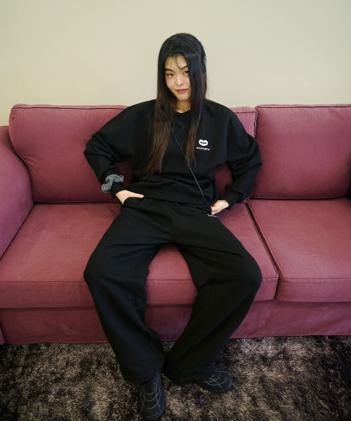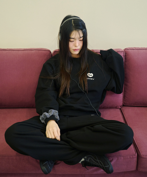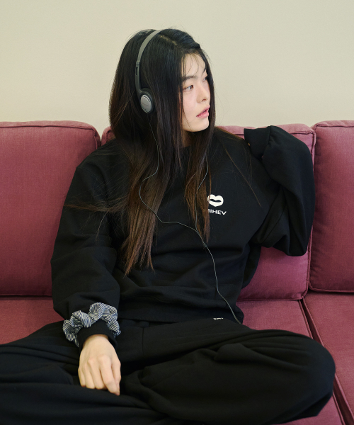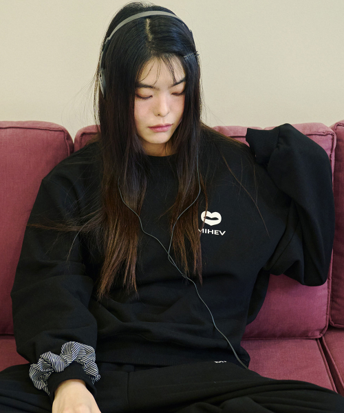 [UNISEX] 스티치 클래식 로고 스웻셔츠 블랙