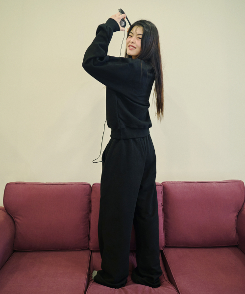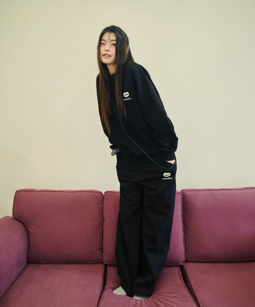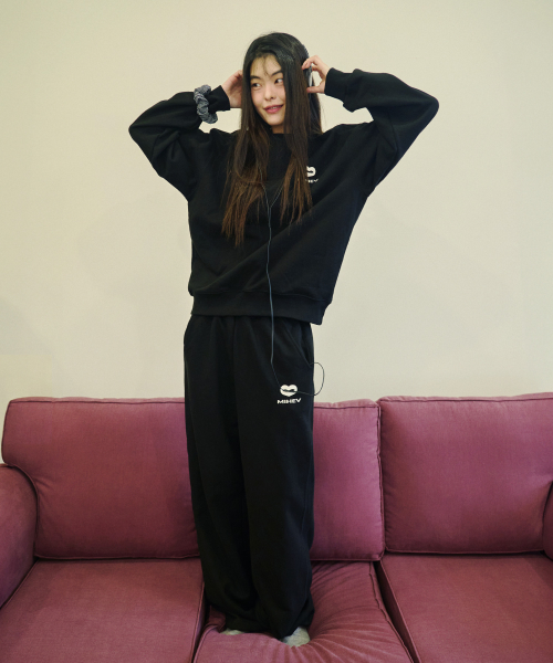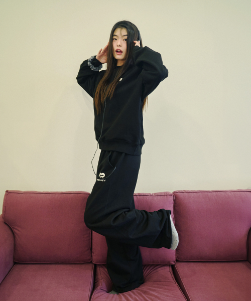 [UNISEX] 스티치 클래식 로고 스웻팬츠 블랙