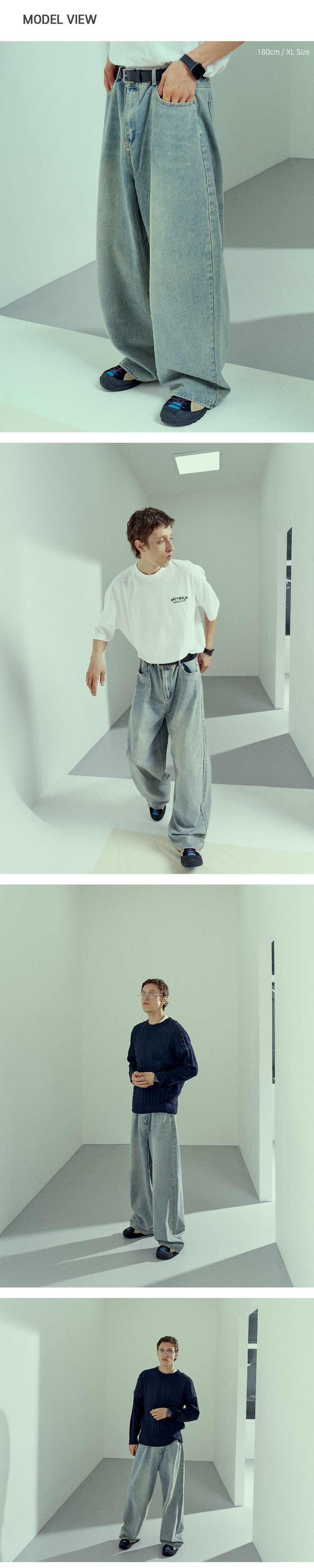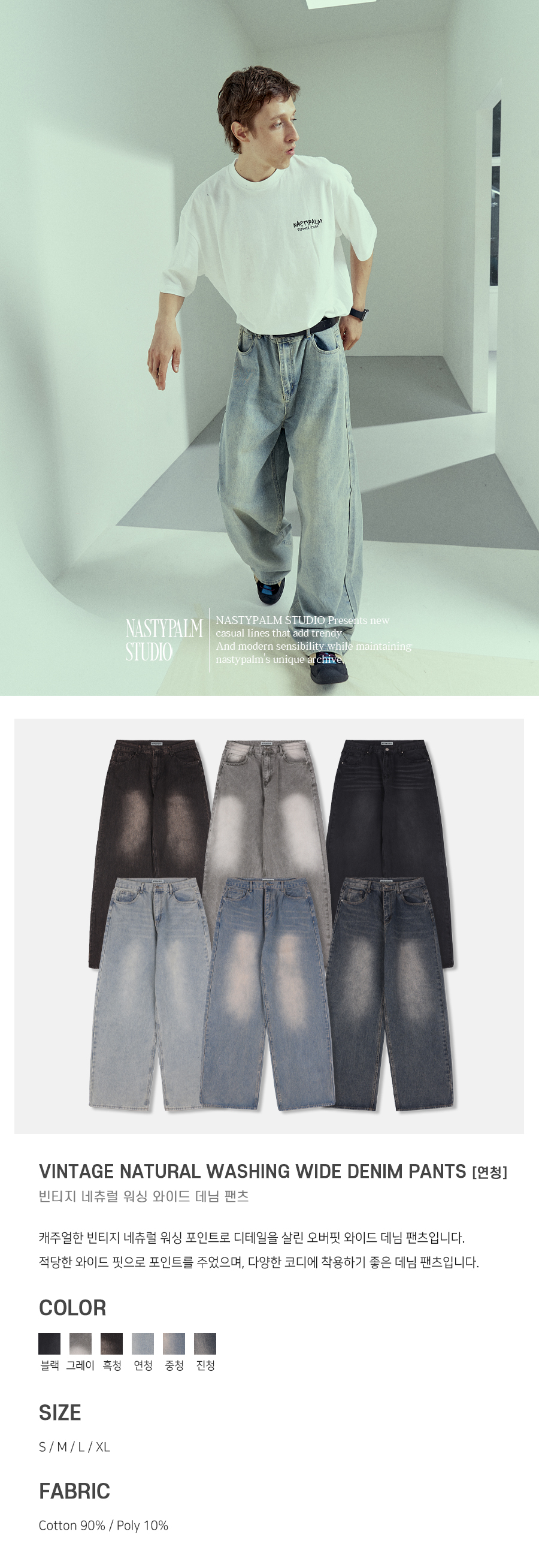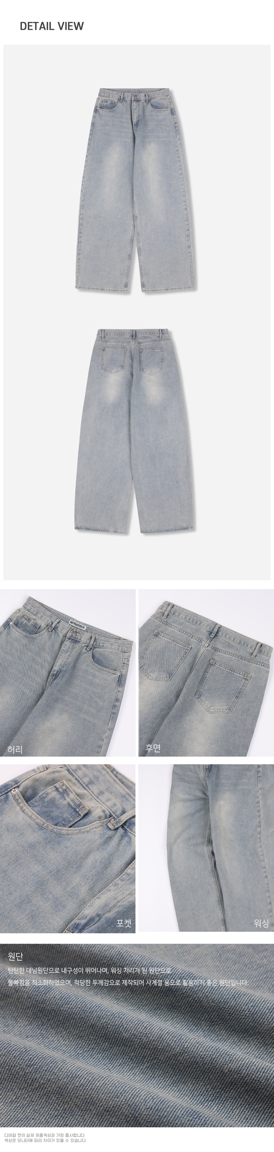 빈티지 네츄럴 워싱 와이드 데님 팬츠 연청