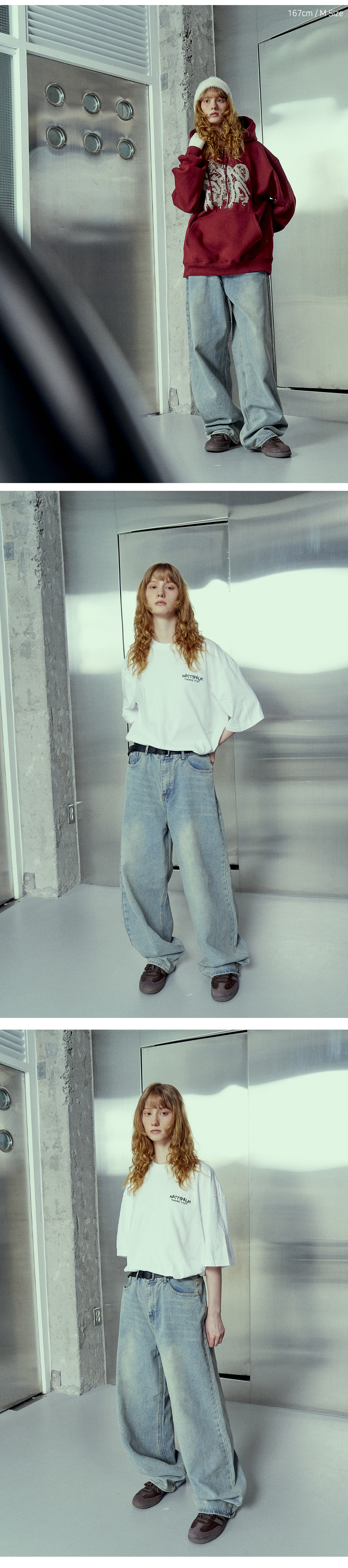 빈티지 네츄럴 워싱 와이드 데님 팬츠 중청