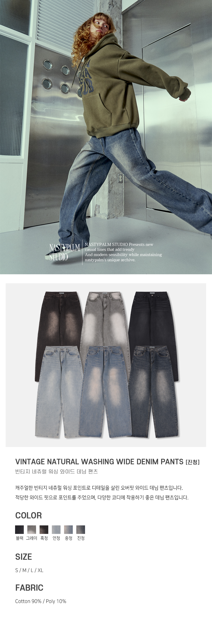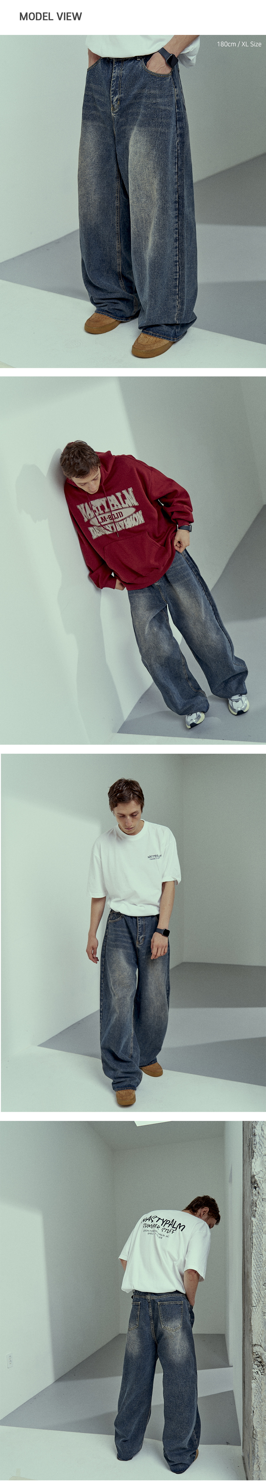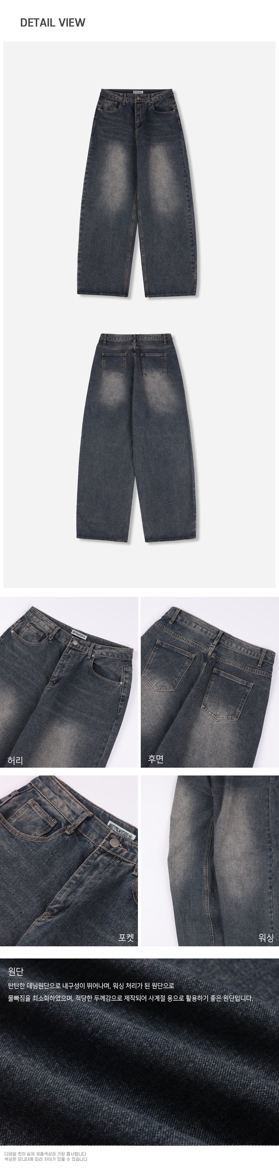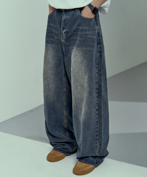 빈티지 네츄럴 워싱 와이드 데님 팬츠 진청