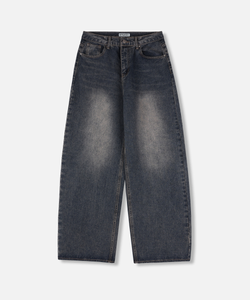 빈티지 네츄럴 워싱 와이드 데님 팬츠 흑청