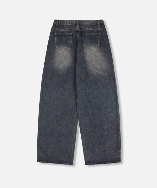 핀턱 벌룬핏 와이드 데님팬츠 (Dark Blue)