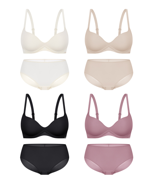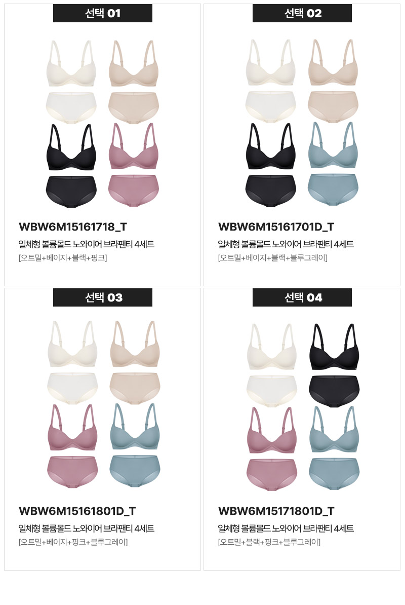 [4PACK] 일체형 볼륨몰드 노와이어 브라팬티 세트