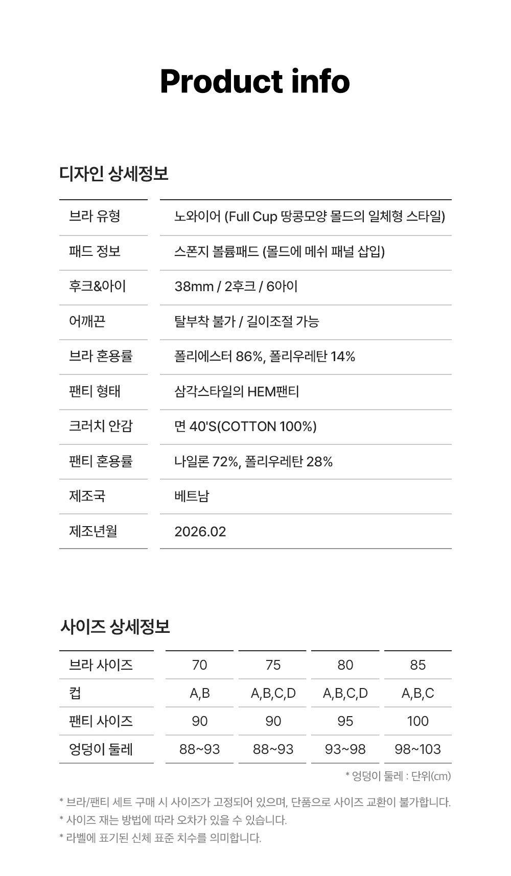 [최지수 PICK] 일체형 볼륨몰드 노와이어 브라팬티 세트