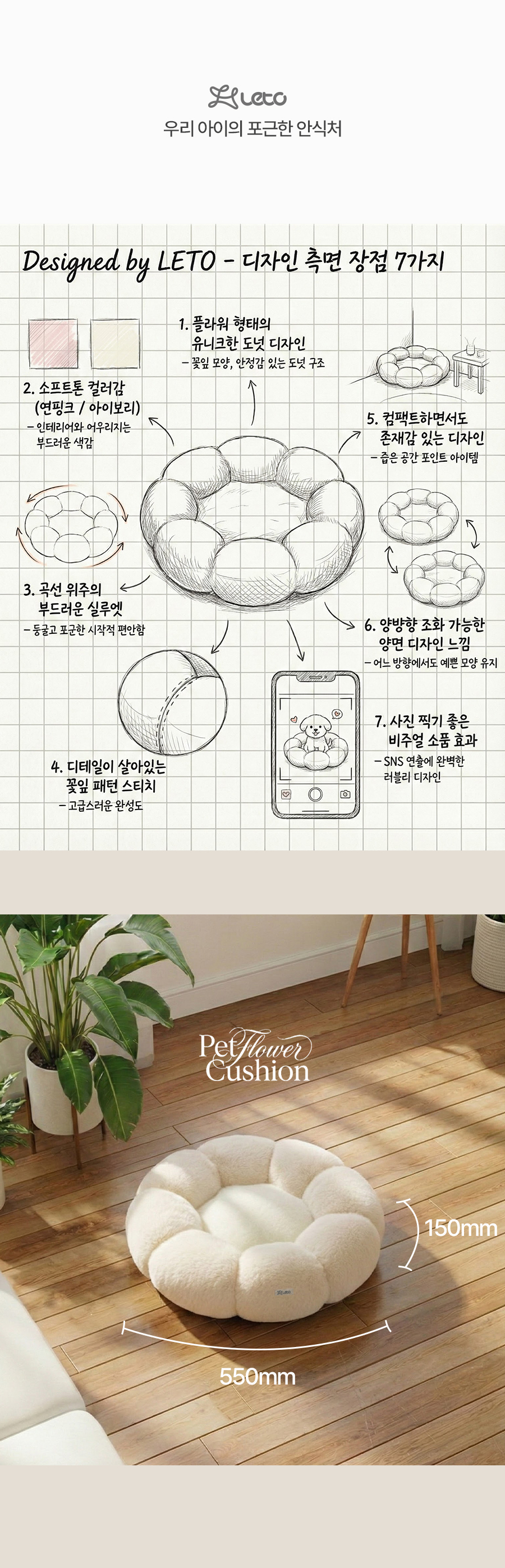 플라워 강아지 방석 쿠션