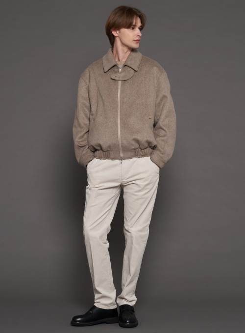 [XL~4XL]울 블렌드 카라 블루종 자켓_베이지