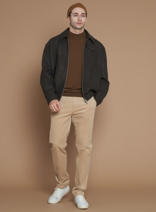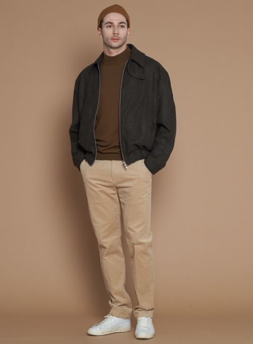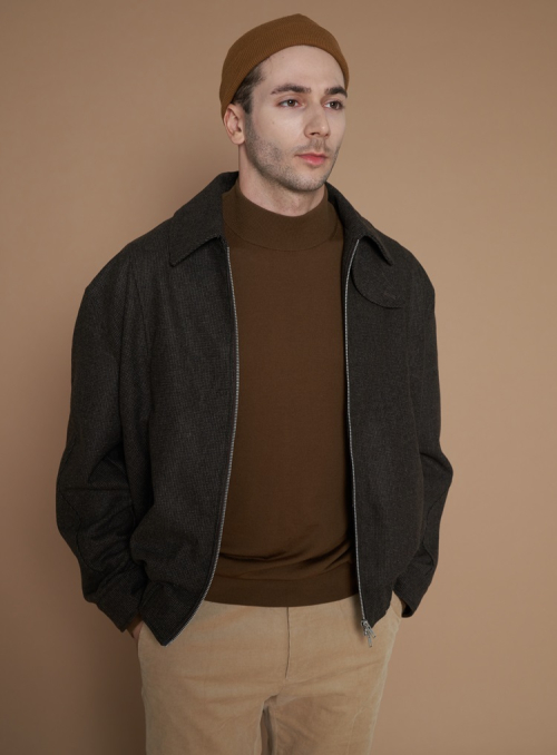 [XL~4XL]울 블렌드 카라 블루종 자켓_카키그레이