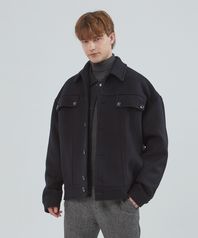 울 블렌드 블루종 코트_블랙