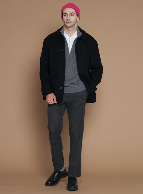 [XL~4XL]울 블렌드 하프코트_블랙