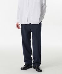 원 턱 루즈 테이퍼드 히든 밴딩 슬랙스 [네이비]