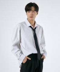 [넥타이 SET] 와이드 스트라이프 오버 셔츠
