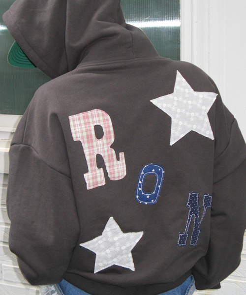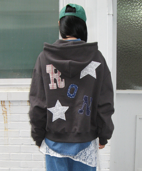 RON PATCH MIXED APPLIQUE HOODIE ZIP UP CHARCOAL