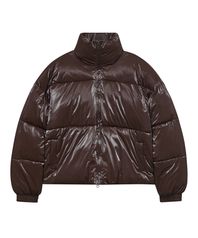 86-IRO339 에센셜 글로시 하이넥 숏패딩 브라운