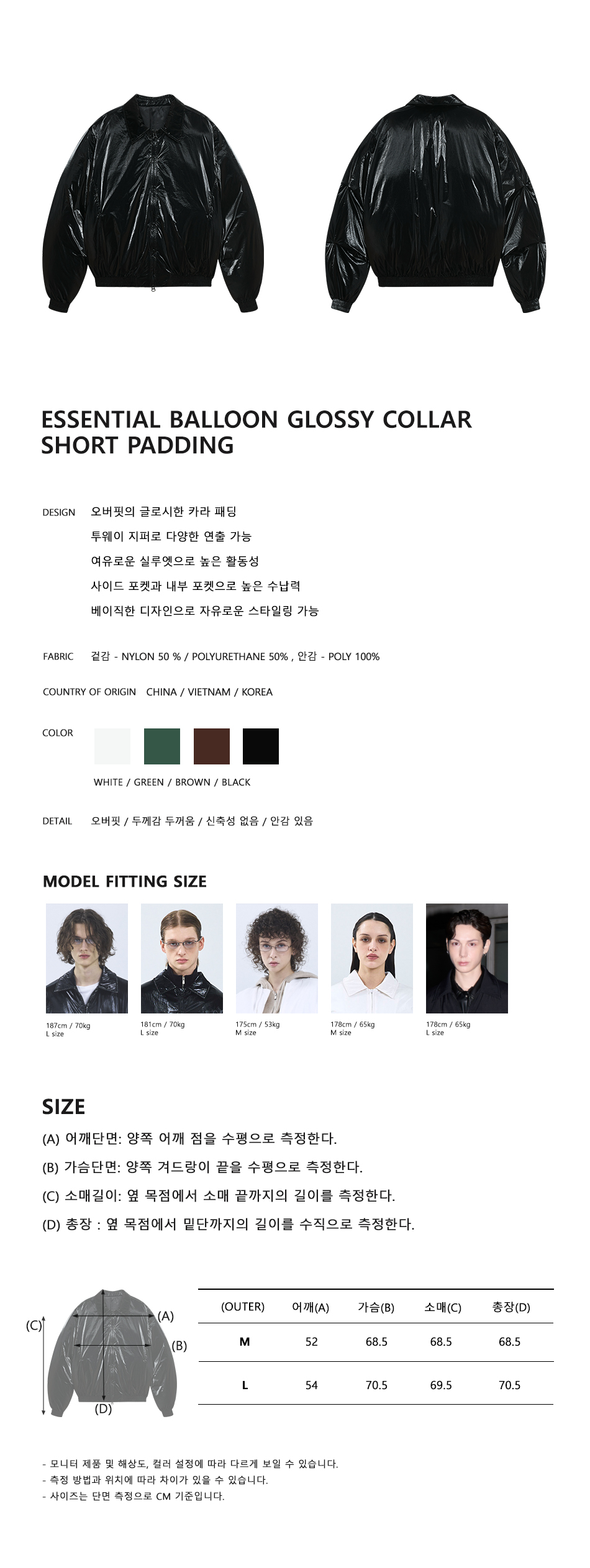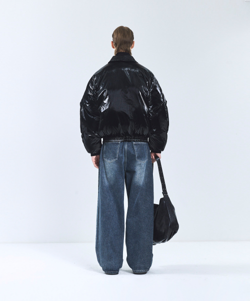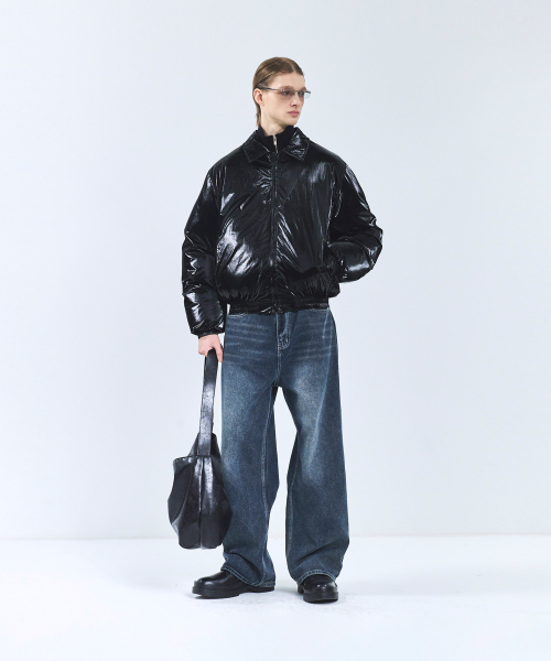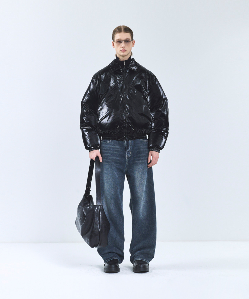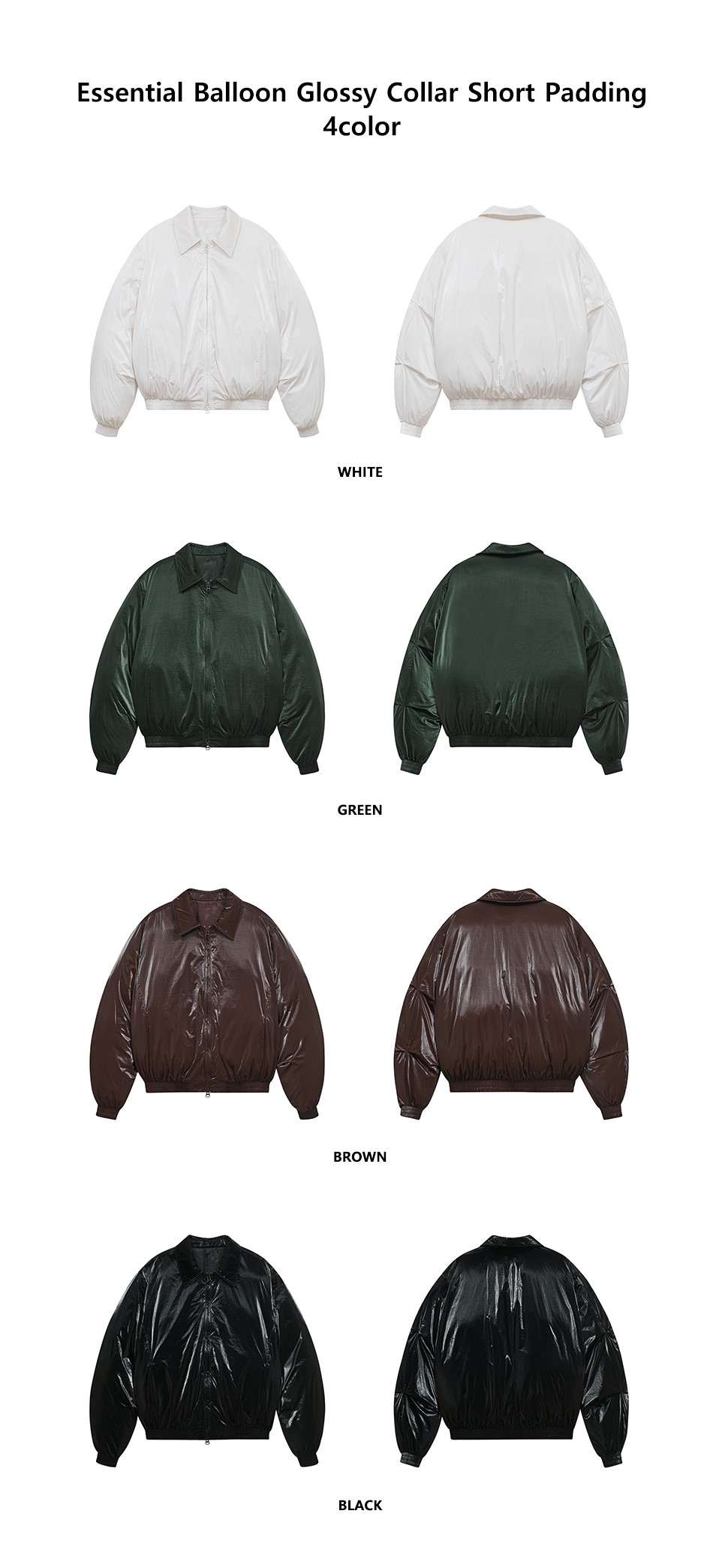 86-IRO340 에센셜 벌룬 글로시 카라 숏패딩 블랙