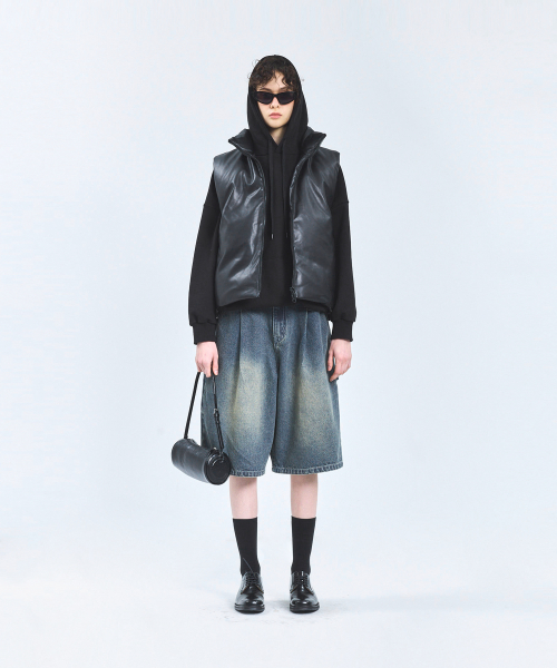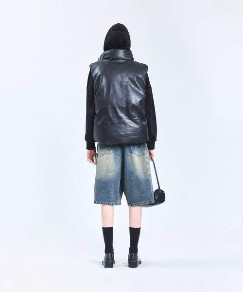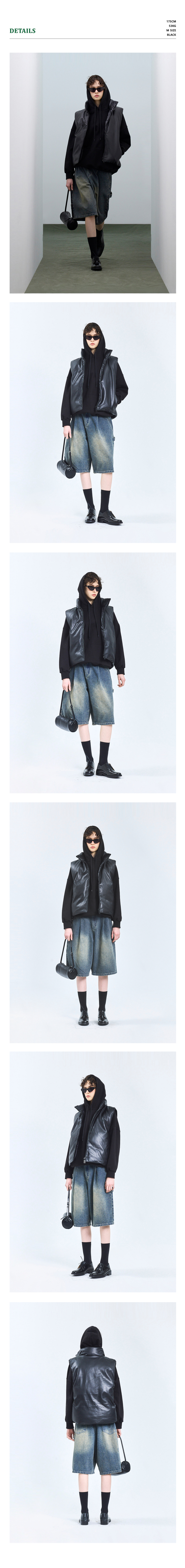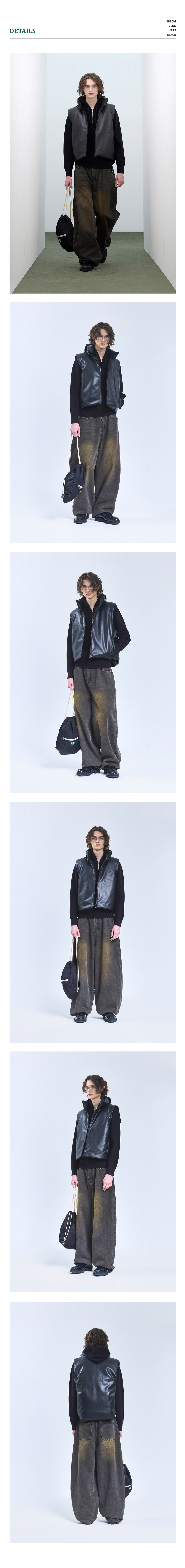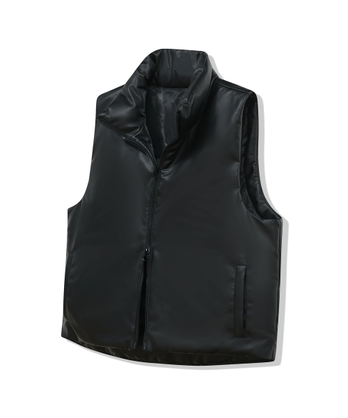 87-STAN109 유틸리티 레더 패딩 조끼 블랙