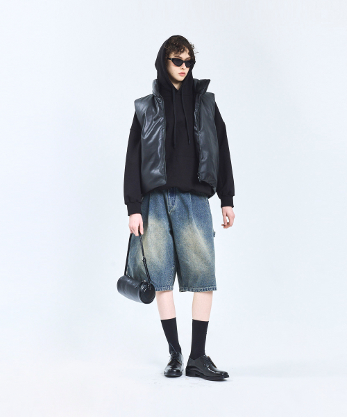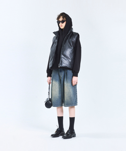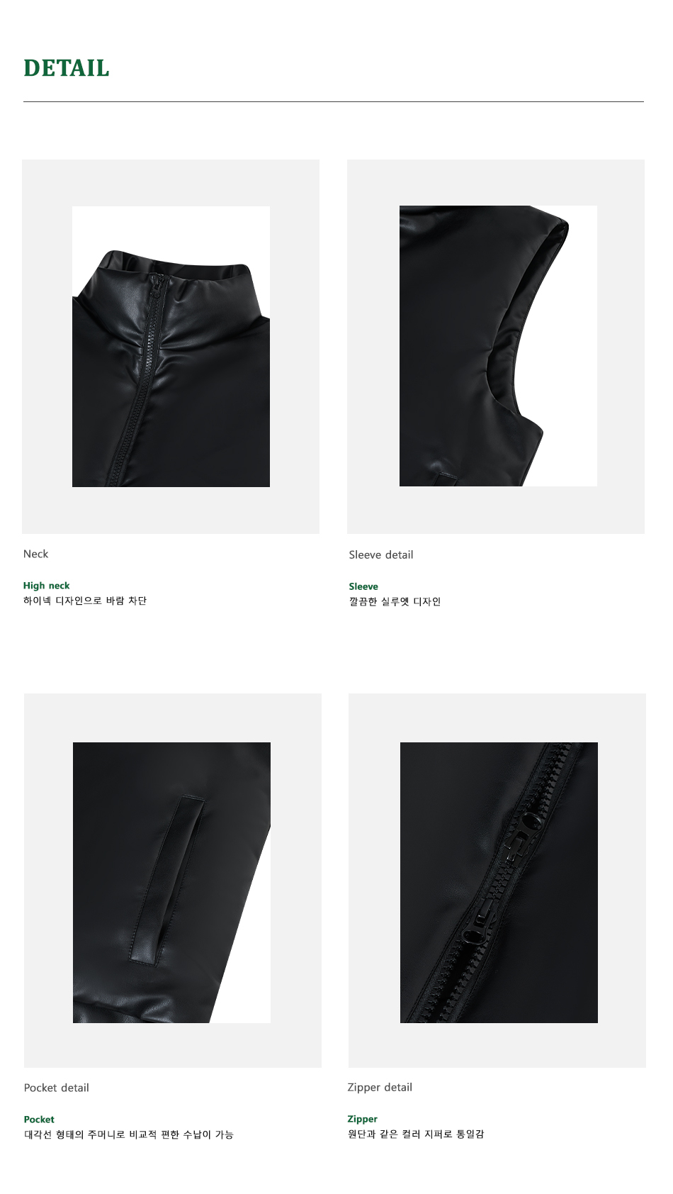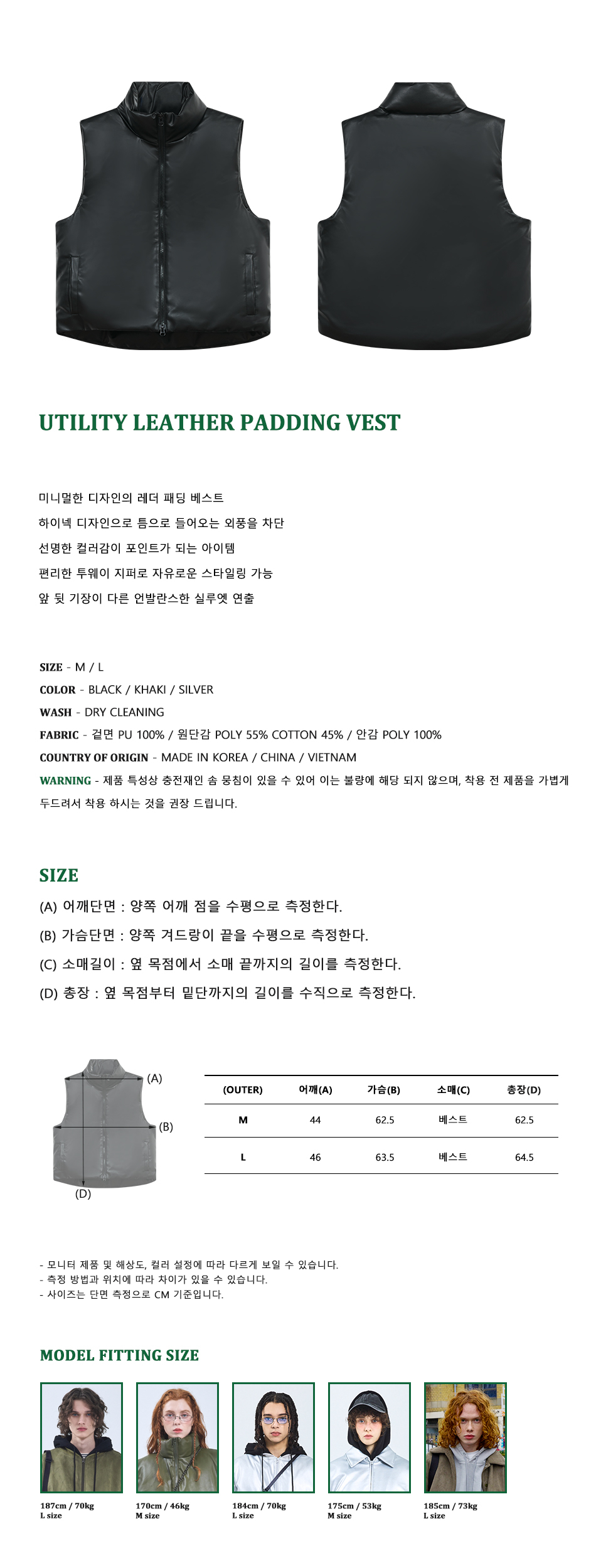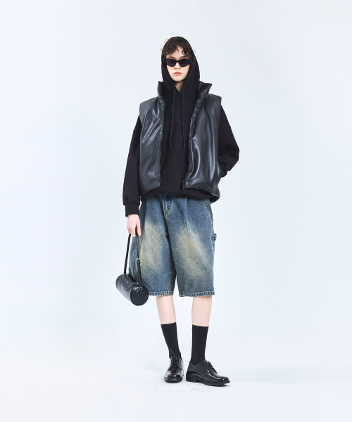 87-STAN109 유틸리티 레더 패딩 조끼 블랙