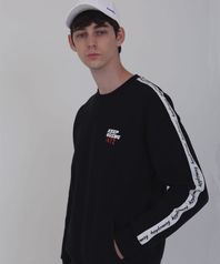 스포티 테이핑 오버핏 기모 맨투맨 블랙
