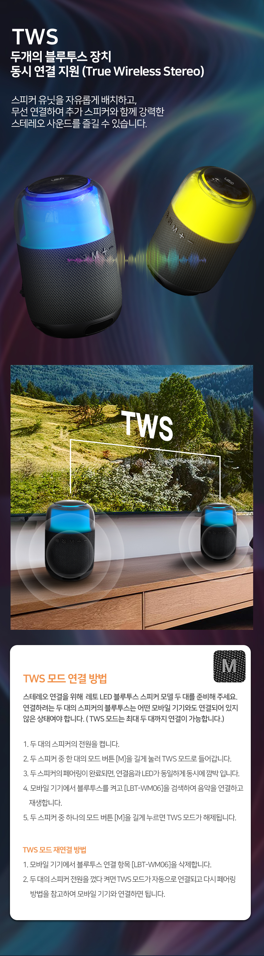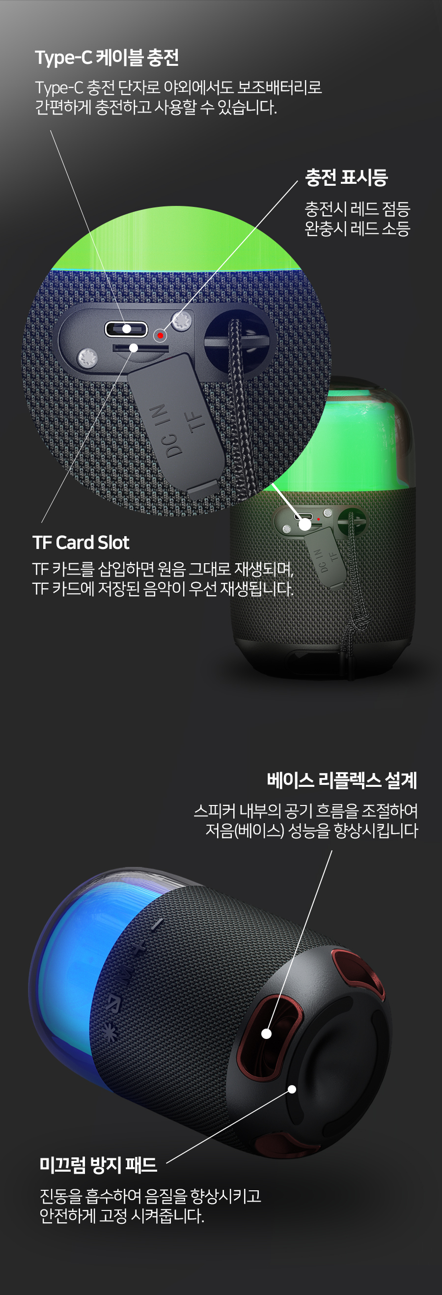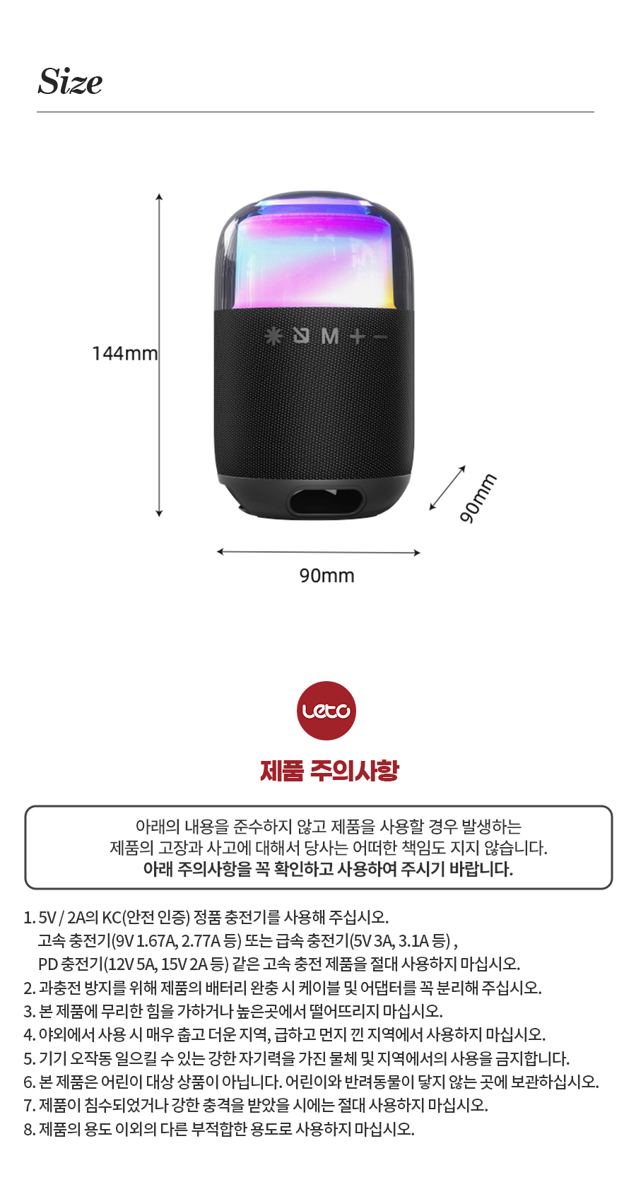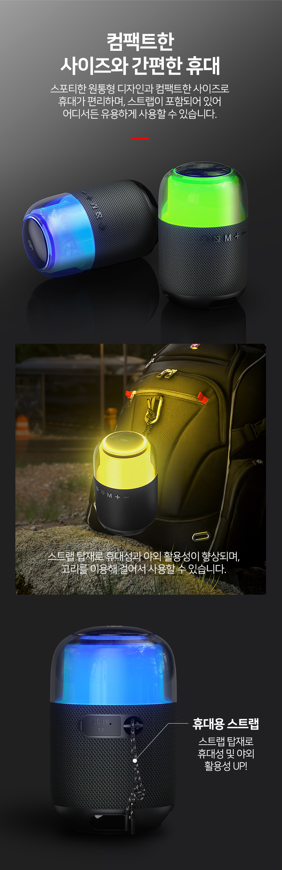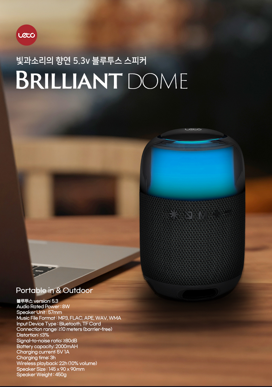 8W 우퍼 스테레오 LED 블루투스 스피커